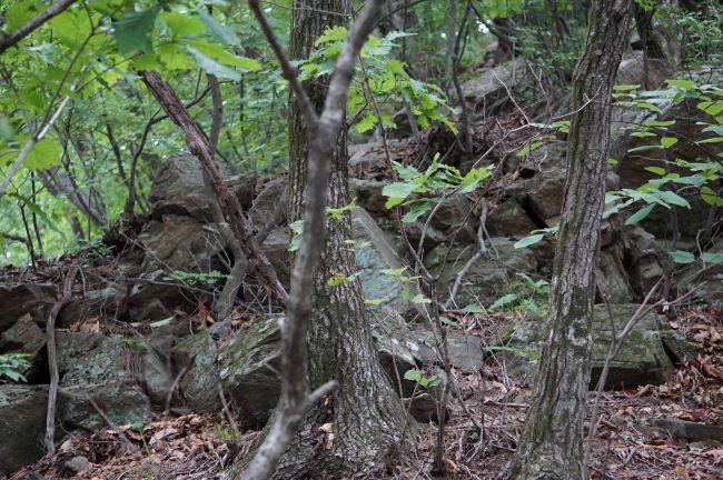 잠시 숨 고르는 평지길에 바윗돌입니다. 바위도 없는 산길에 큰 바위가 나타나는데 다시 보니 물곰이 엎드려 있는 모습을 좀 닮았네요. 지난번에는 저 물곰바위 위에서 잠시 쉬어 갔었죠. 오늘은 패스.