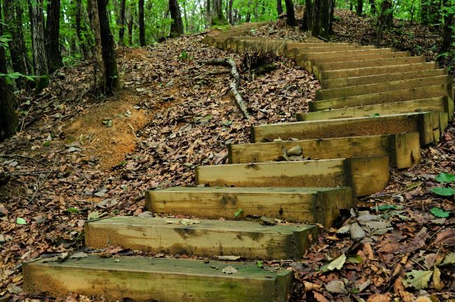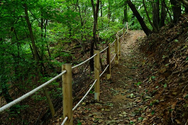 계단 52개와 63개를 올라, 이어지는 오르막 산길에,