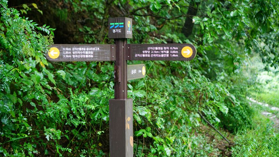 군자산길에는 이정표 말뚝이 자주 보입니다.
