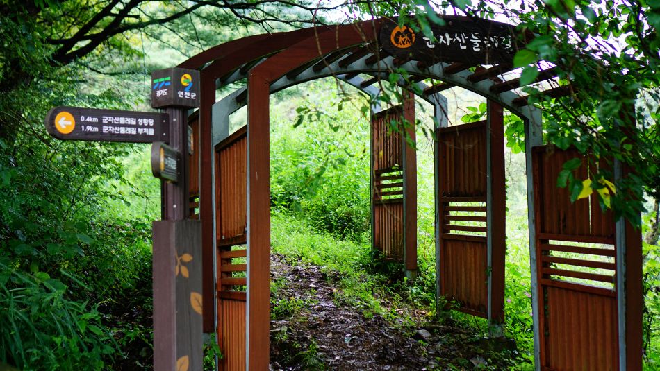 | 교통편: 1호선 전철(인천 ~ 연천) 종착역, 연천역 호젓한 산길(둘레길) 순환코스: 연천역 2번출구 - 연인공원(망곡공원) - 망곡산둘레길(맨발산책로 - 화장실 - 임도) - 읍내리고개 - 군자산둘레길(밤나무길 - 옥계배수지 - 읍내리 샘고개 - 군자산 정자 - 해맞이길 - 하산길 - 차탄리) - 연천군청 - 카페 더벤티홀릭 - 연천역 4번출구 하이라이트: 연인공원 연천뷰, 망곡산 맨발산책로, 군자산 정자(해맞이 쉼터), 군자산길 우중 산행 1시간(11시 반~12시 반) 주의사항: 해맞이길 ~ 차탄리 방향 하산길 구간에 무릎, 허리까지 자란 무성한 잡초로 길 실종상태, 뱀주의, |