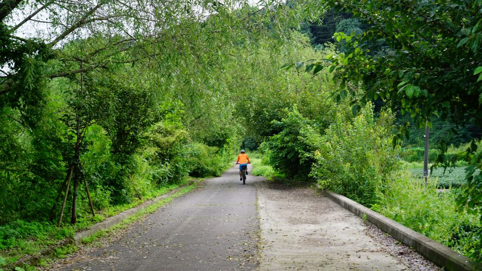 왼쪽에 녹슨 철길, 우측에는 차탄천, 승차감 좋은 아스팔트길 신나게 달립니다.