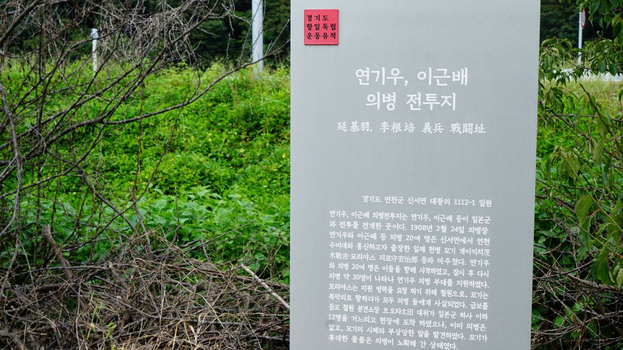 11:45분, 차탄천공원 개나리지구, 이곳은 의병 연기우, 이근배의 의병 전투지였습니다.