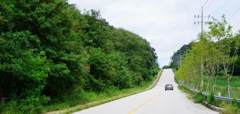 12:53분, 좌측으로 직진 백마고지역으로 가는 대마리 갈림길 사거리에서 우틀 동송 가는 길,