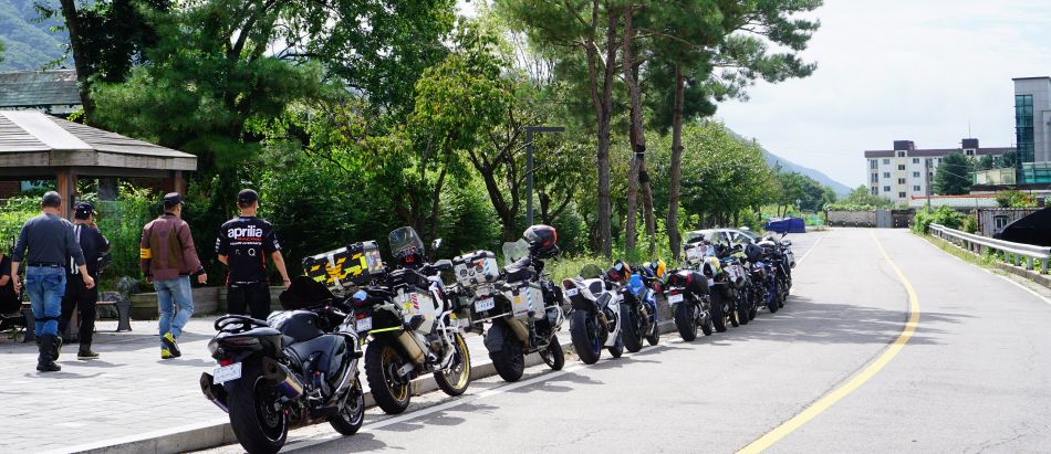 역전 길가에 줄지어 늘어선 오토바이들, 오토바이들에 인기코스인가 보네요. 양쪽 길가에는 주차된 차량들로 빈틈이 없습니다.