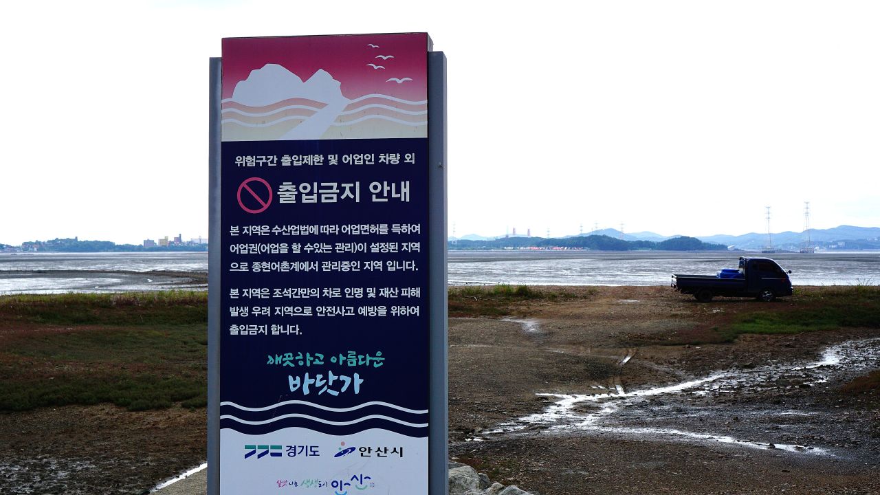 엇!! 출입금지 안내문입니다. '본 지역은 조석간만의 차로 인명 및 안전사고 위험지역으로 출입을 금지합니다'.. 라는데 코스는 그냥 진행하라는 것인가 보네요. 일단 슬슬 들어가 보니..