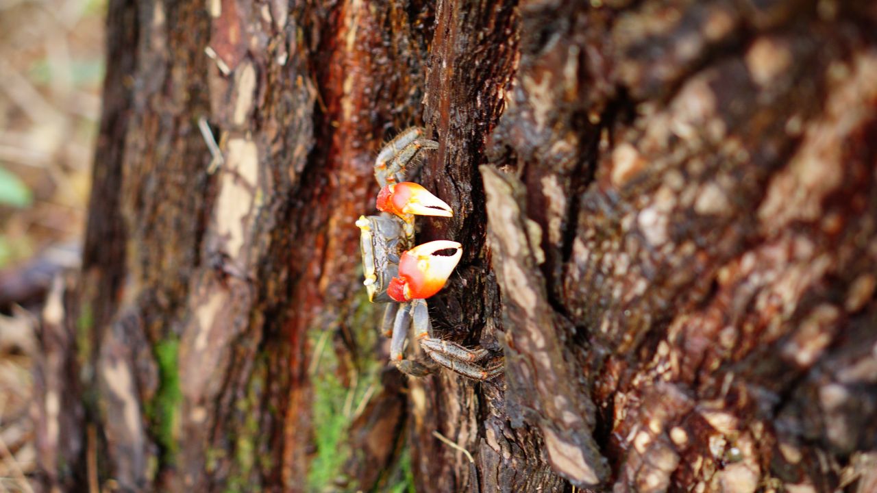 16:00분, 다시 만난 도둑게, 녀석은 계속 나무를 타고 오르며 숨으려 합니다.