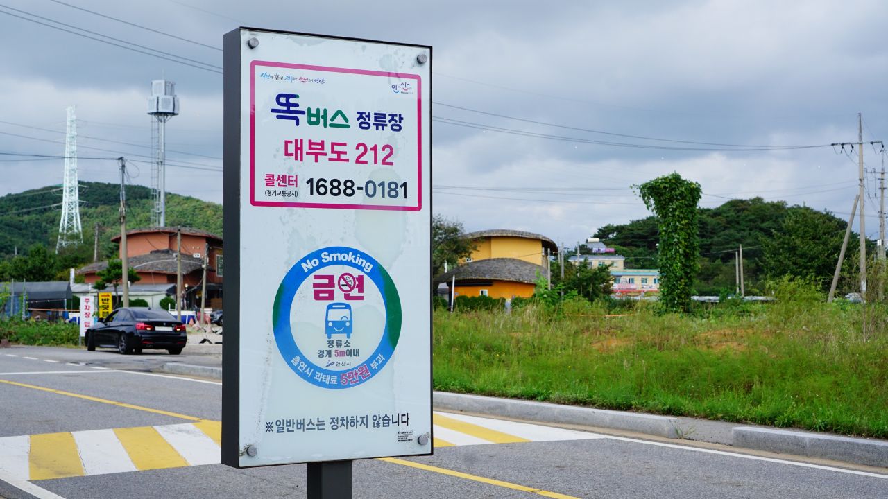 반딧불 펜션 코너에 똑 버스정류장인데.. 똑 버스가 뭐지?? 검색을 해보니 콜센터로 부르면 달려오는 버스네요, 콜택시와 비슷한 콜버스네요. 요긴할 때 한번 불러볼까요.