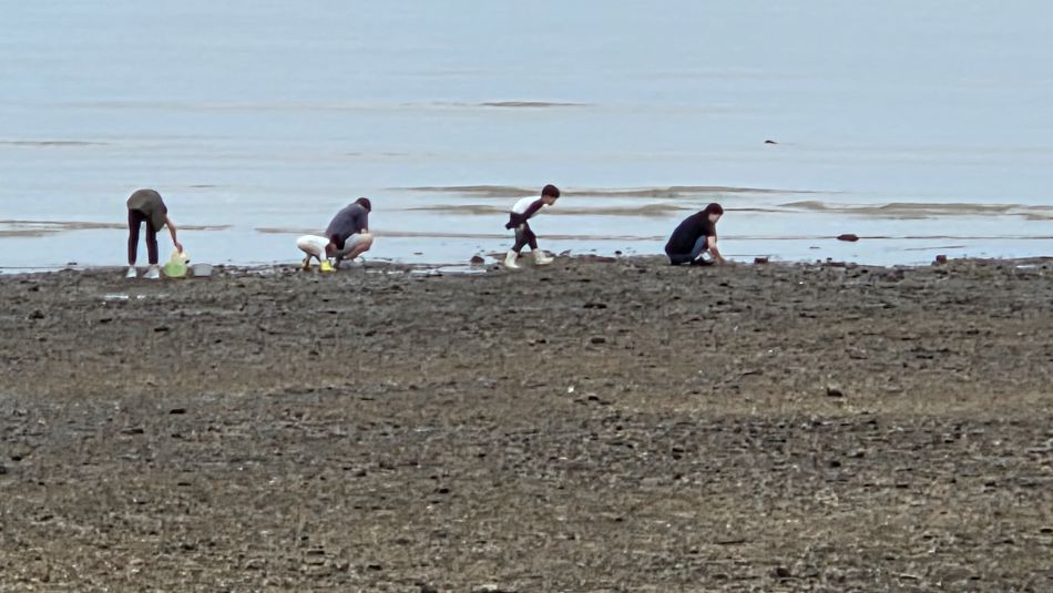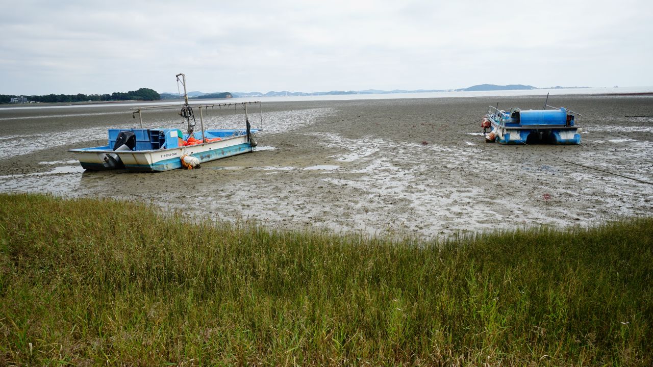 바다가 멀리 물러난 드넓은 갯벌에,
