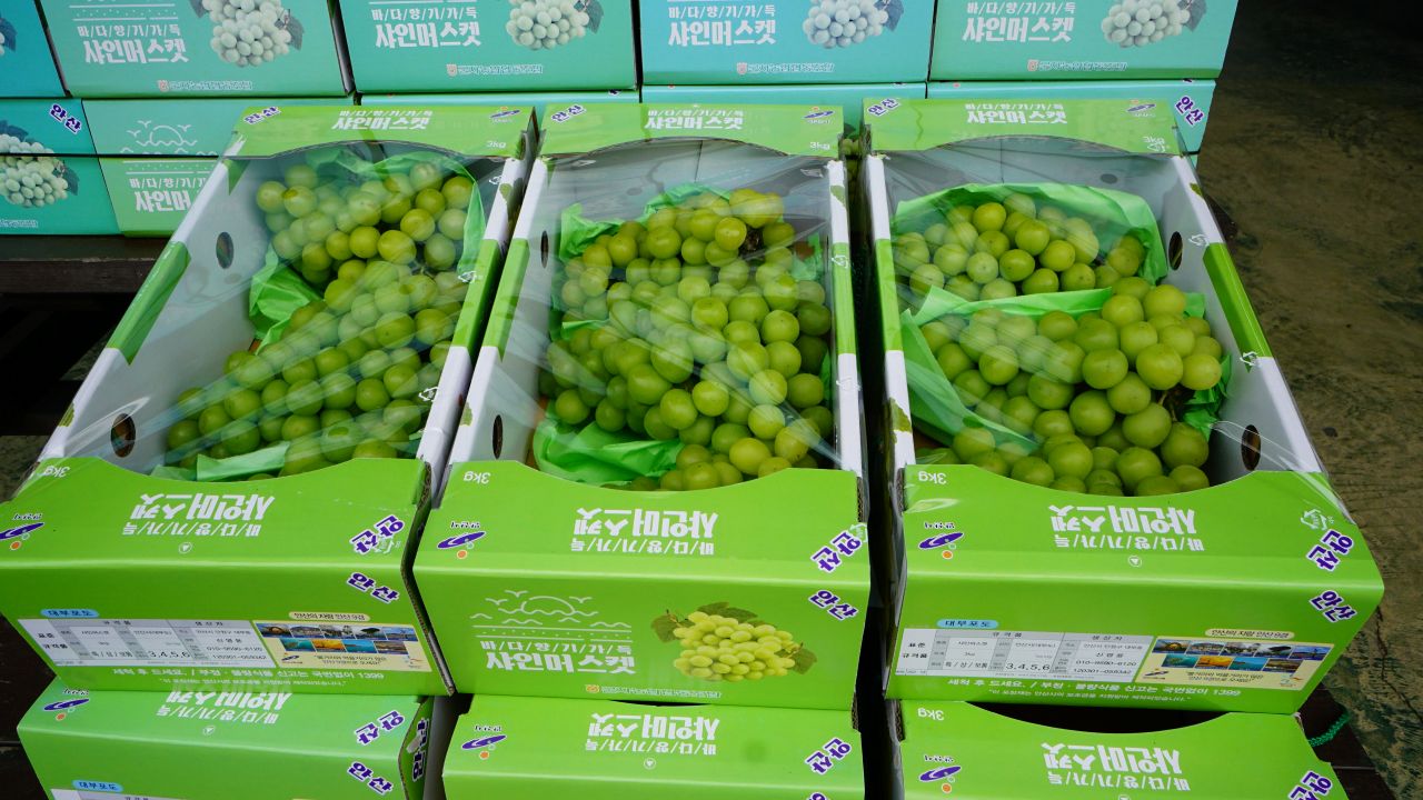 군자농협에서 샤인머스켓이라는 청포도가 출하되었네요.