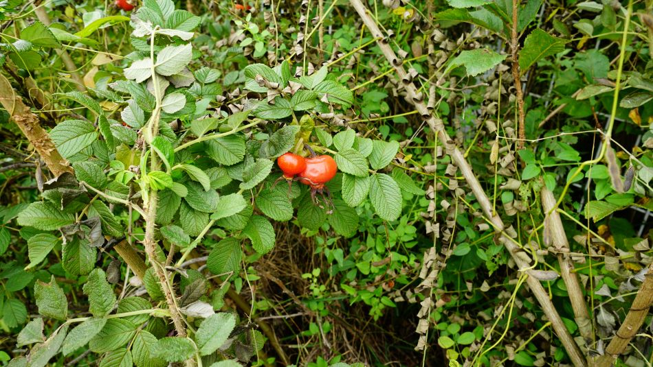 학교 주변 길 따라 무성한 해당화는 대부분 꽃이 지고 빨간 열매를 맺어놓고 있는데, 간혹 새로 피어오르는 꽃봉오리도 보이네요.