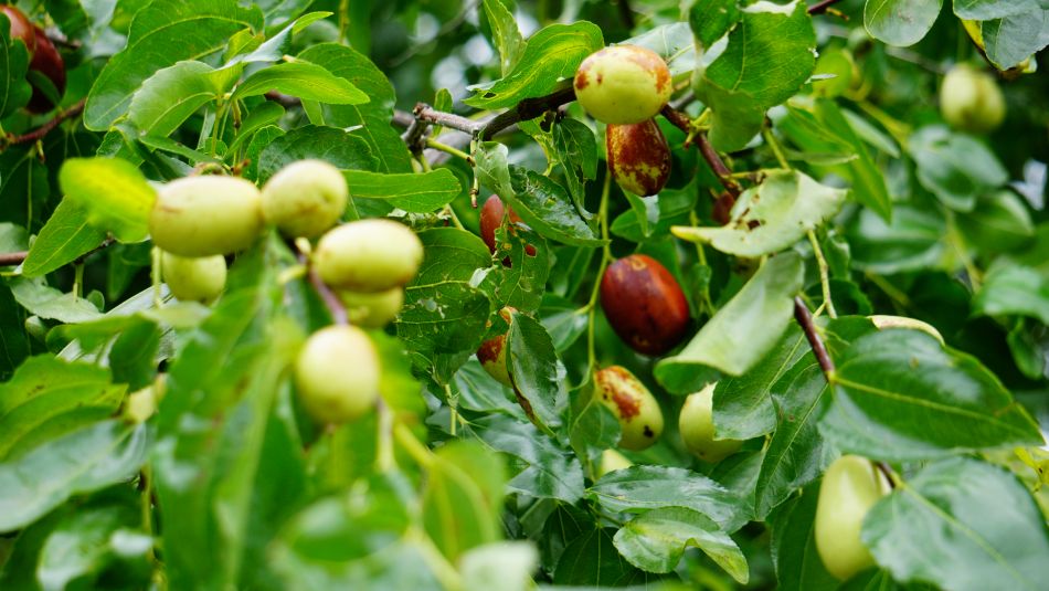 마을길가에 풋사과, 대추, 밤송이가 익어가고 있습니다.
