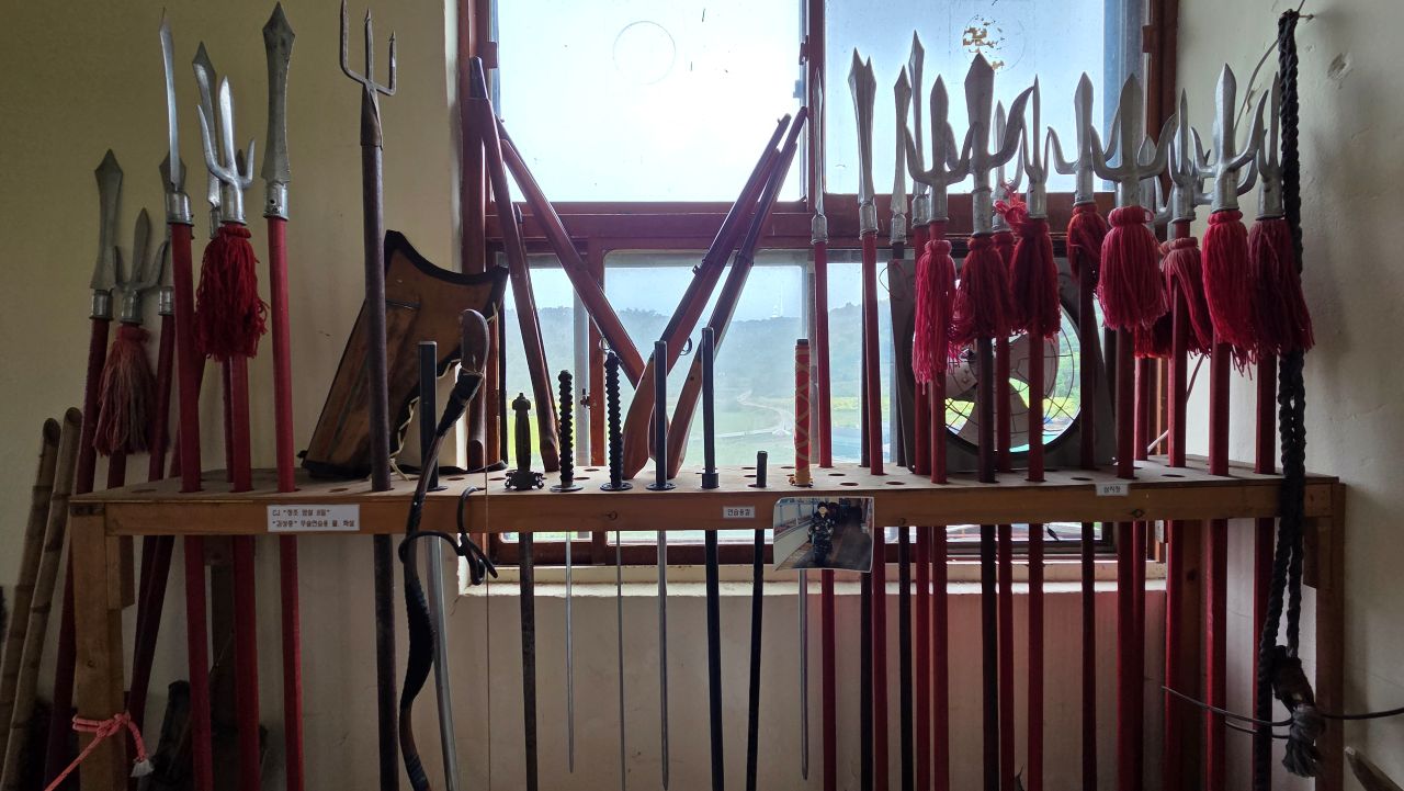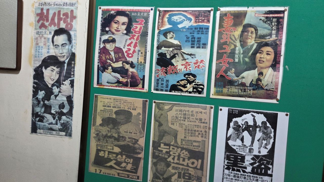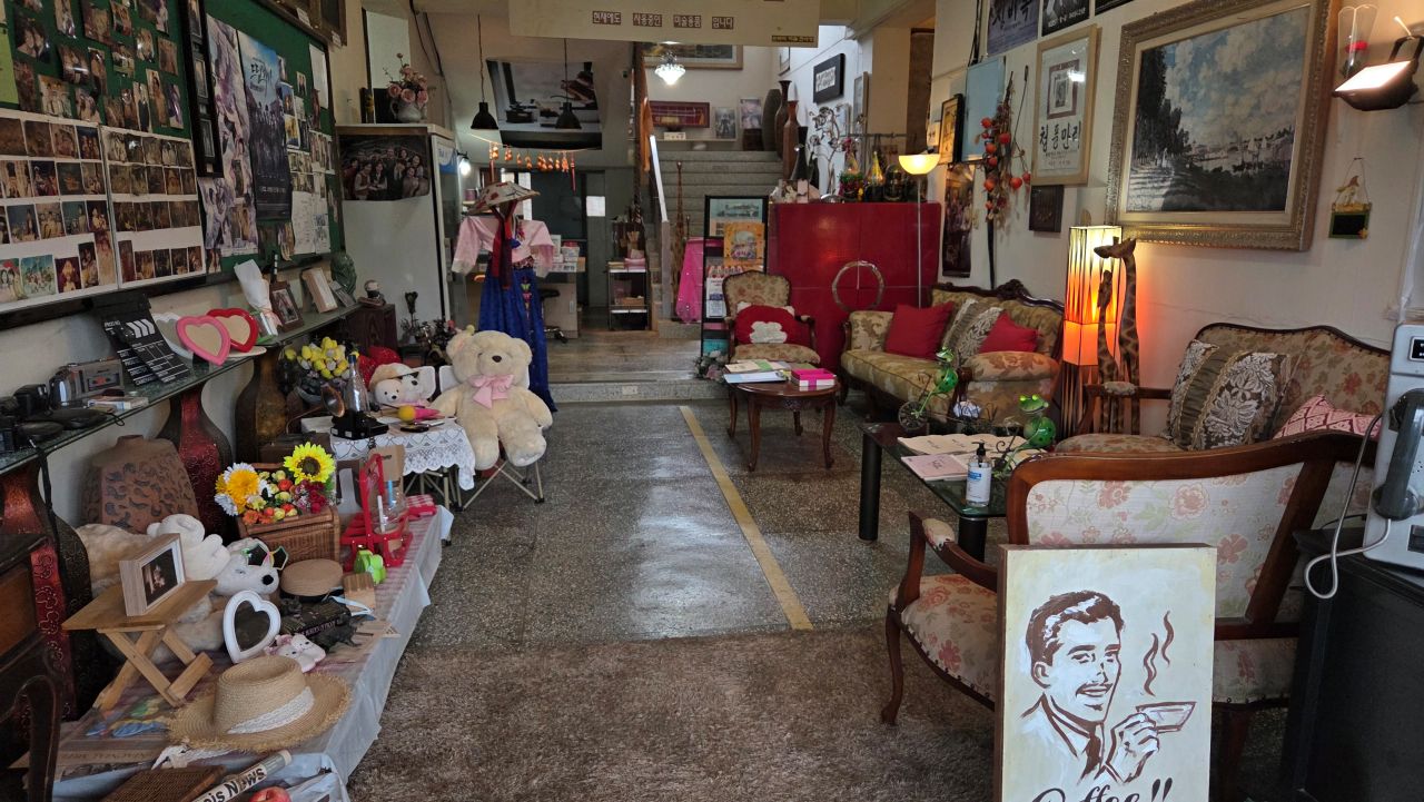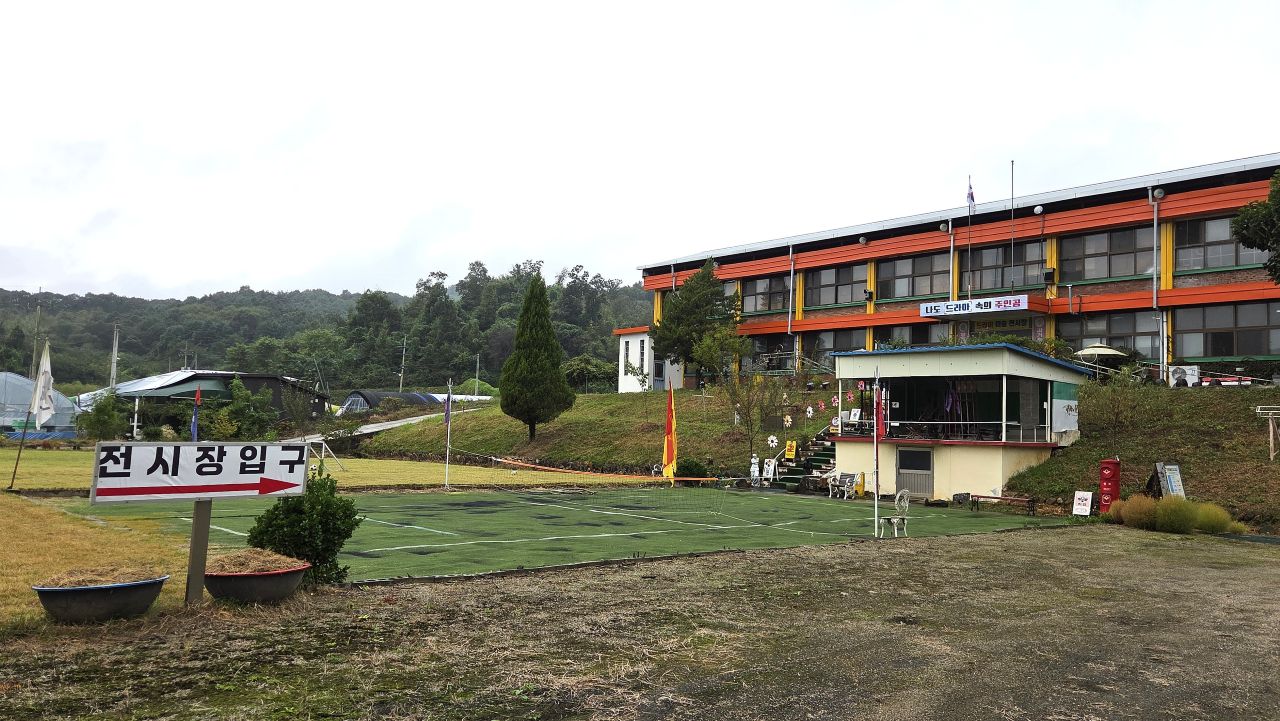 그날, 민통선 안에 있는 평화습지원을 찾아가 가을꽃을 보고 오려 자전거 타고 달려간 것인데, 삼곶리초소에서 '민통선 내 공사 중'으로 이달 말까지 출입금지 명령이 하달되었다는 이유로 입장 거부되어 되돌아온 날이죠. 드라마미술? 전시장? 체험장? 이색테마인데.. 하면서 몇 번 지나가면서도 별 관심 없이 지나쳤다가 그날 비도 피할 겸 들어가 봤는데요, 의외로 옛 추억을 소환하는 소품들이 많아 지날 기회 되면 한번 들려볼 것을 권해드리고 싶네요. 대박 히트 쳤던 몇몇 영화, 드라마 촬영현장 세트를 재현해 놓기도 하고, 촬영장비, 촬영도구, 촬영소품 모조품, 소재들과 지나간 세월의 추억을 소환하는 수많은 골동품들이 전시장(교실) 가득가득 모아져 있어 그때 그 시절 감성을 떠올리게 하는 시간여행이 되겠습니다. 유료입장인데요, 카페도 겸하고 있어 라테 한잔 시켜 손에 들고 1층, 2층, 이교실 저 교실 다니며 느긋하게 관람하였습니다. 오징어게임 딱지치기 체험에 어린이들 앞에서 자신 있게 도전해 봤지만 딱!! 퍽!! 소리만 요란했지 꿈쩍도 않네요. 습기가 많은 날이어서 딱지가 습기를 잔뜩 머금고 있는가 보다..라는 것이 도전자 모두들의 핑계였습니다.
