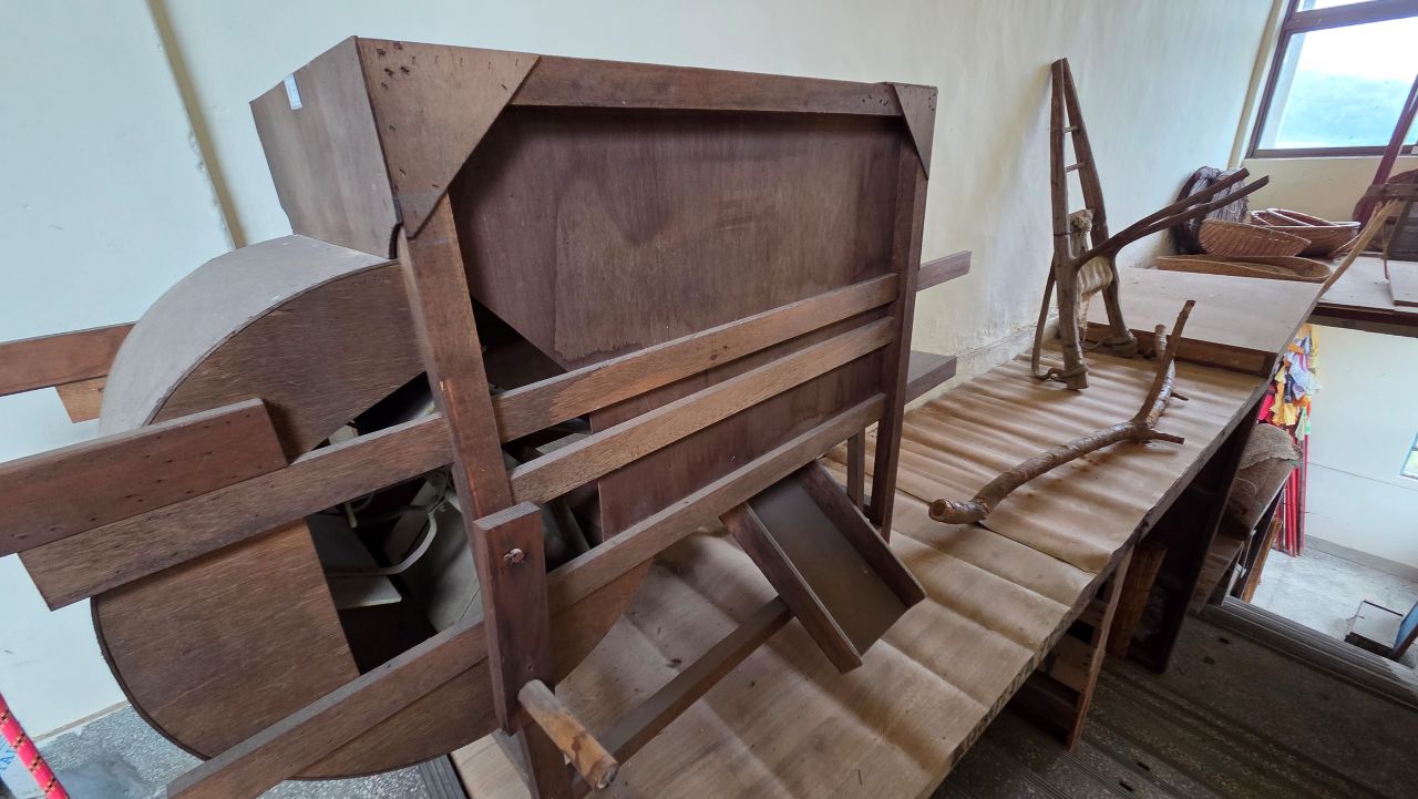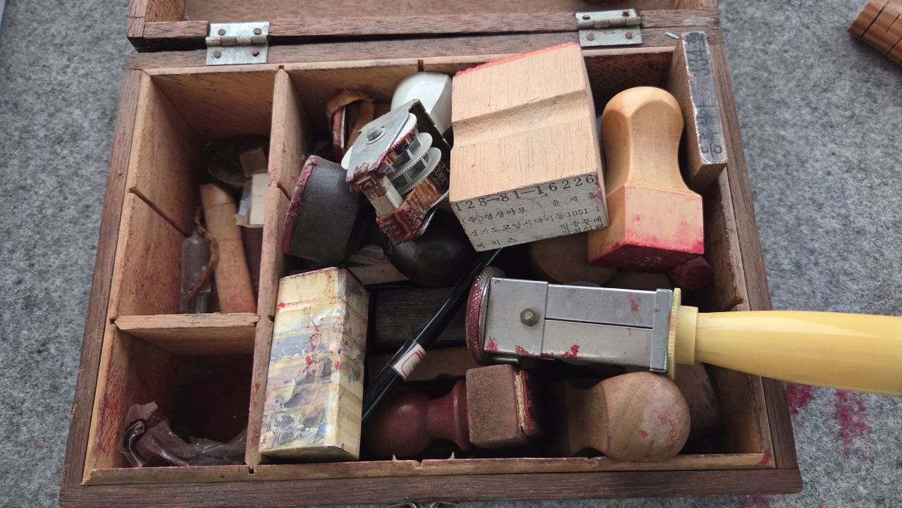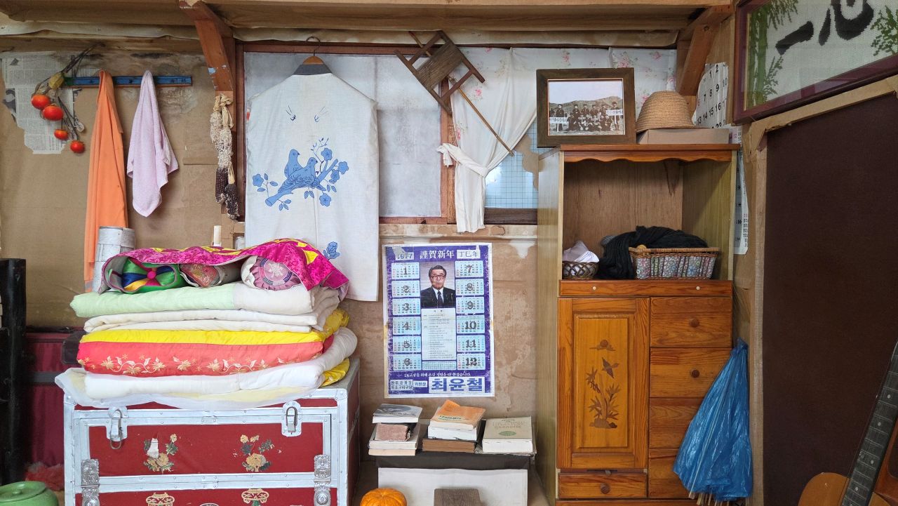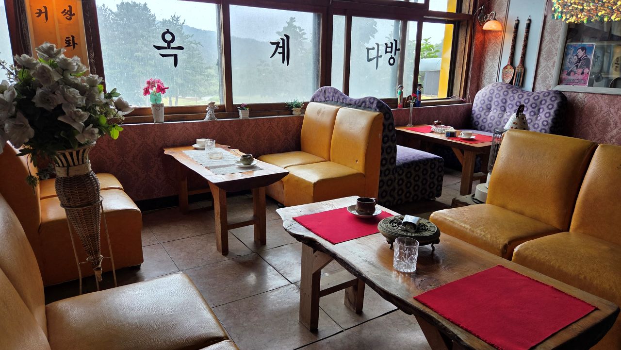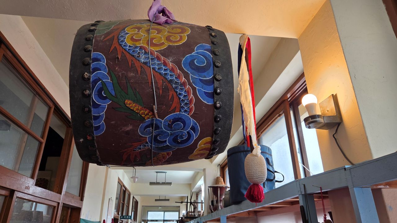그날, 민통선 안에 있는 평화습지원을 찾아가 가을꽃을 보고 오려 자전거 타고 달려간 것인데, 삼곶리초소에서 '민통선 내 공사 중'으로 이달 말까지 출입금지 명령이 하달되었다는 이유로 입장 거부되어 되돌아온 날이죠. 드라마미술? 전시장? 체험장? 이색테마인데.. 하면서 몇 번 지나가면서도 별 관심 없이 지나쳤다가 그날 비도 피할 겸 들어가 봤는데요, 의외로 옛 추억을 소환하는 소품들이 많아 지날 기회 되면 한번 들려볼 것을 권해드리고 싶네요. 대박 히트 쳤던 몇몇 영화, 드라마 촬영현장 세트를 재현해 놓기도 하고, 촬영장비, 촬영도구, 촬영소품 모조품, 소재들과 지나간 세월의 추억을 소환하는 수많은 골동품들이 전시장(교실) 가득가득 모아져 있어 그때 그 시절 감성을 떠올리게 하는 시간여행이 되겠습니다. 유료입장인데요, 카페도 겸하고 있어 라테 한잔 시켜 손에 들고 1층, 2층, 이교실 저 교실 다니며 느긋하게 관람하였습니다. 오징어게임 딱지치기 체험에 어린이들 앞에서 자신 있게 도전해 봤지만 딱!! 퍽!! 소리만 요란했지 꿈쩍도 않네요. 습기가 많은 날이어서 딱지가 습기를 잔뜩 머금고 있는가 보다..라는 것이 도전자 모두들의 핑계였습니다.