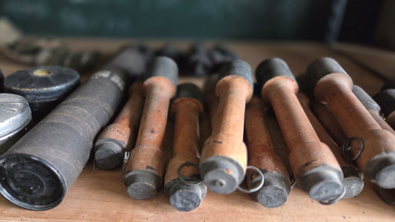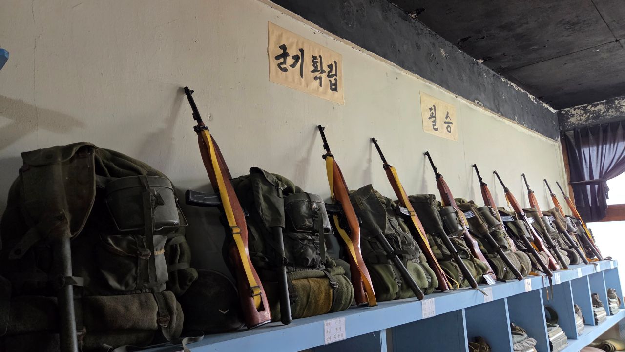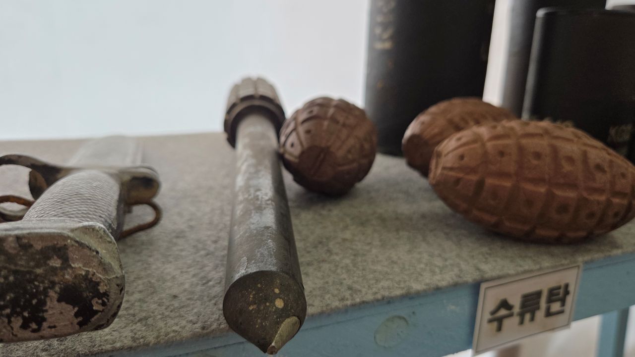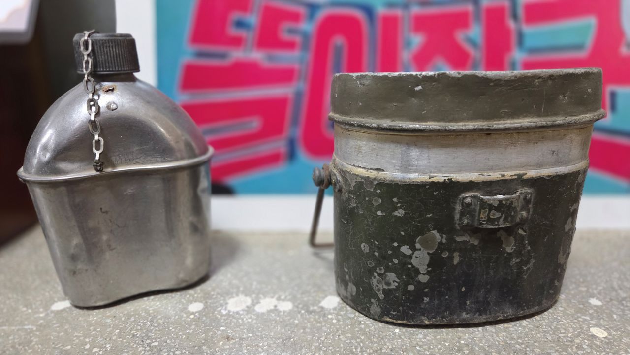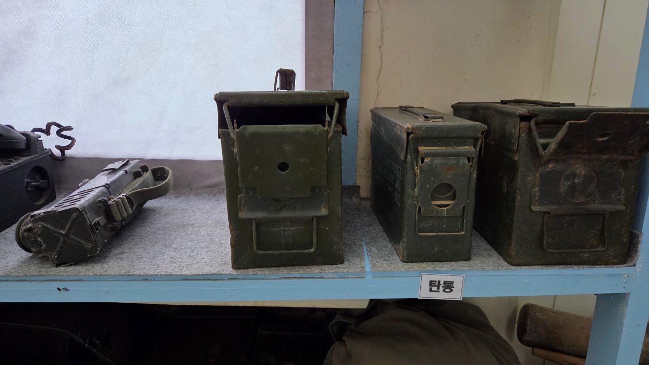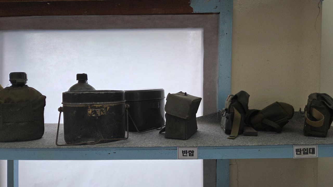 내무반 세트, 군용 소품등도 1, 2층에 나뉘어 전시되어 있습니다. 전투배낭, 수통, 수류탄, 권총류, 반합, 탄입대, 탄통, 칼빈소충, 등등,