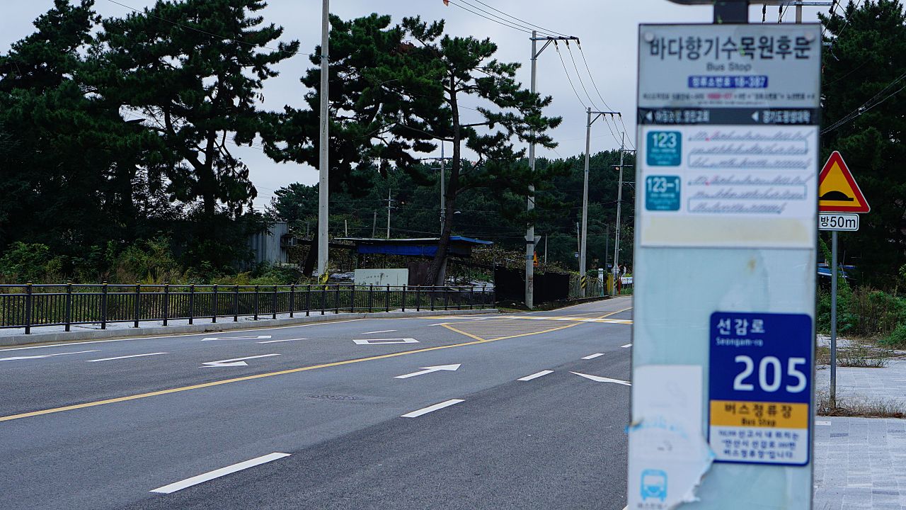 대선방조제, 길건너에 123번 버스가 지나가고 있네요.