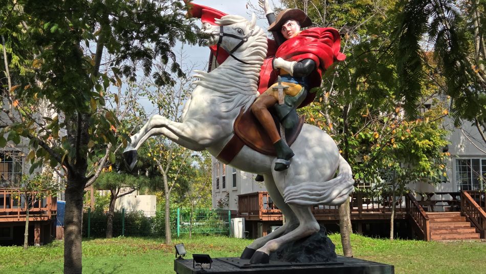 건너편 펜션 잔디밭에는 나폴레옹 기마상인데, 표정이 긴장되어 보이죠.