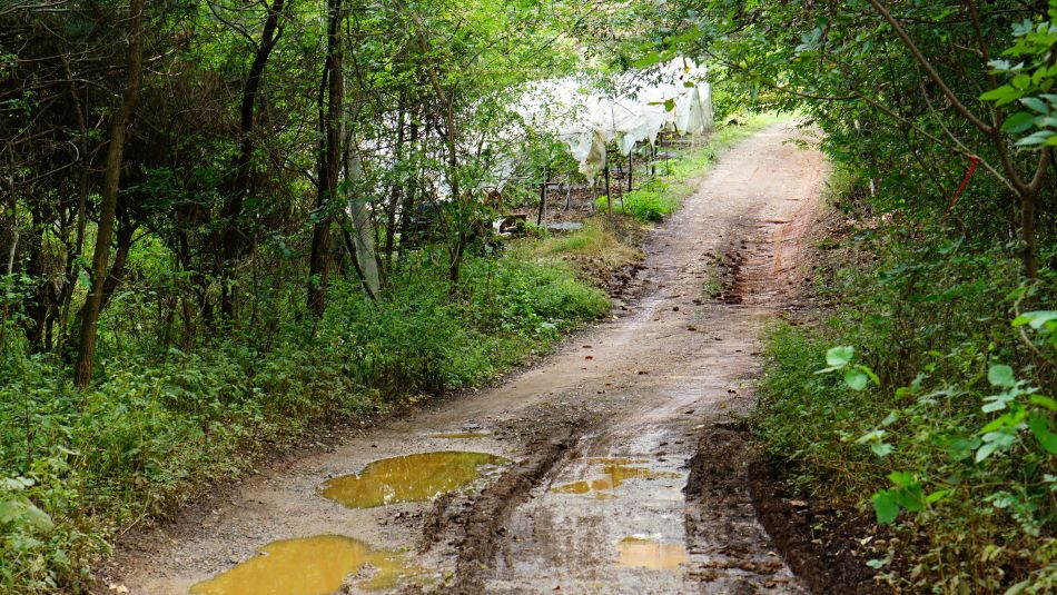 농로에 잡초를 헤치고 나가 쪽다리를 건너가면,