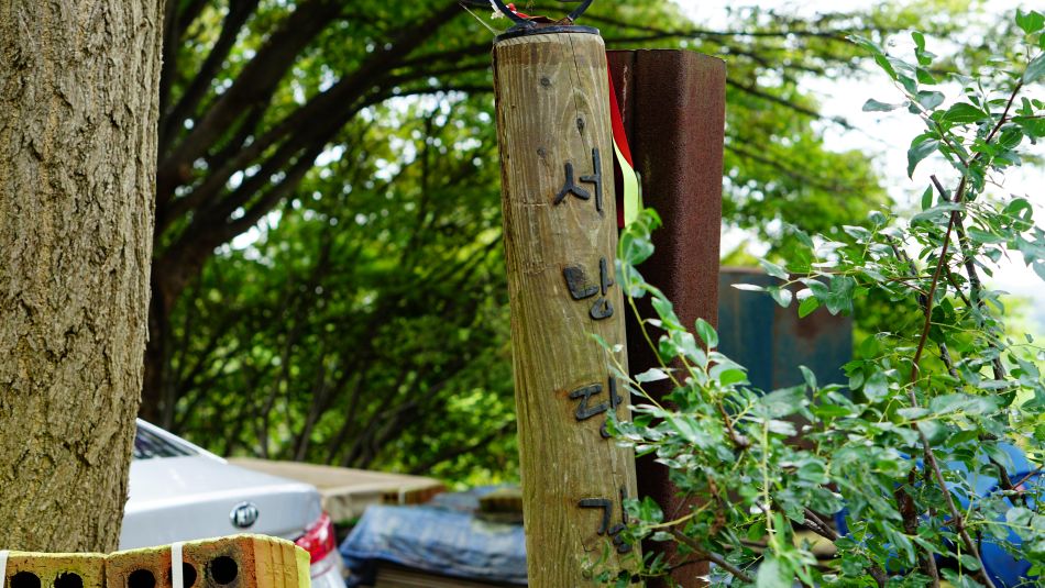 해솔길 5코스 종점, 6코스 시점, 코스를 이탈해 잘 못 들어왔습니다.