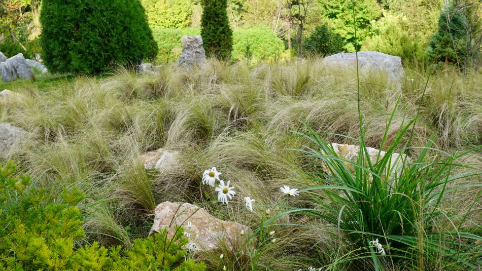 암석원에 핑크뮬리는 색 바랜 귀신풀이 다 되었네요.