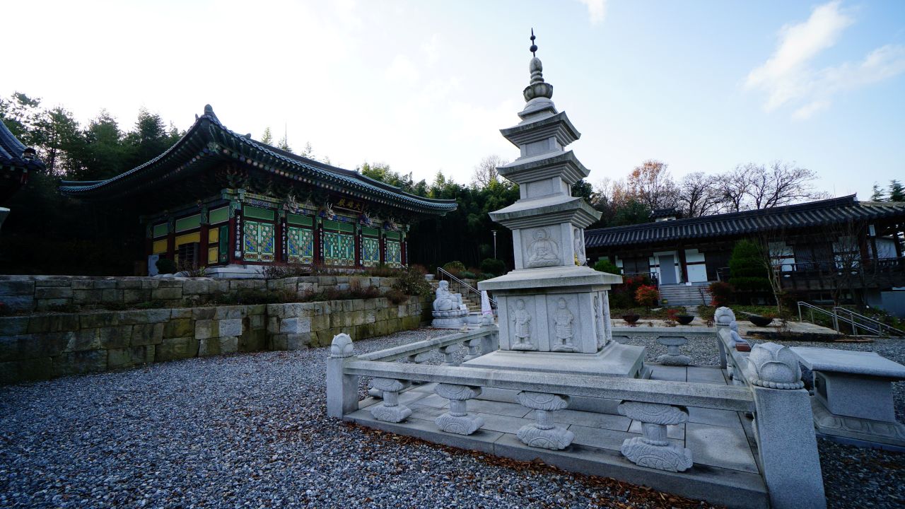1,300여 년 전 원효대사가 당나라로 가던 중 해골에 고인 물을 마시고 크게 깨우쳤다는 오도성지인 수도사 대웅전입니다.