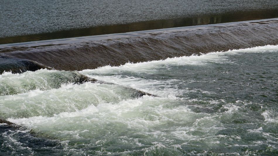 물막이 너머로 흘러넘치는 강물