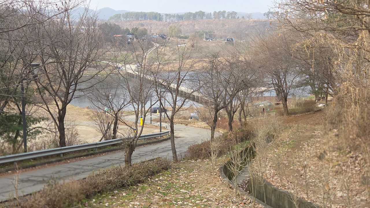 방문자센터 앞 길 건너 전망대, 다음에 걸을 1코스 출발점이죠, 한탄강을 건너가는 세월교가 내려다 보입니다.