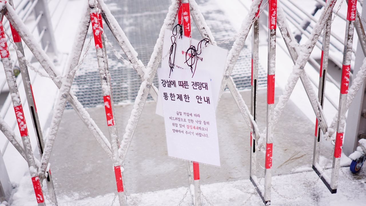 이런! 강설로 인한 진입금지 통행제한 안내문이 걸려있습니다.