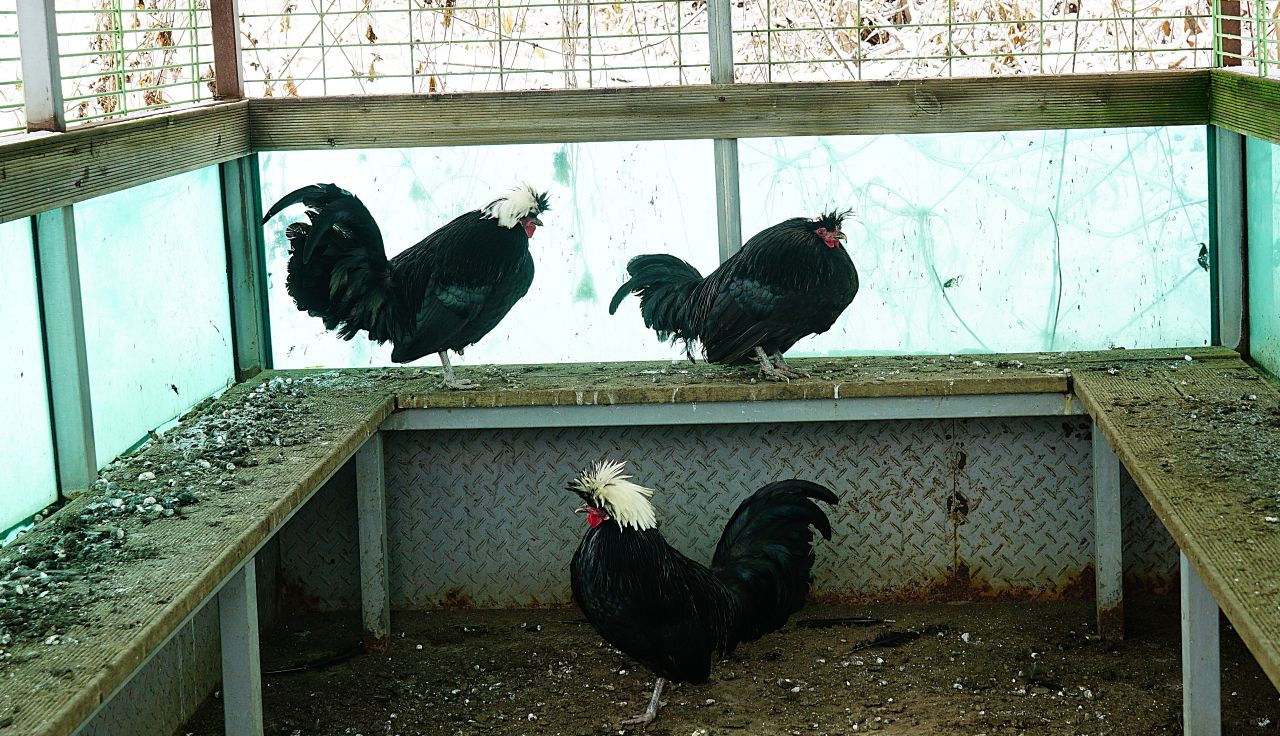 길가 어느 집 닭장에 관상용으로 보이는 특이한 외모의 닭인데 종류가 포리쉬로 검색됩니다.
