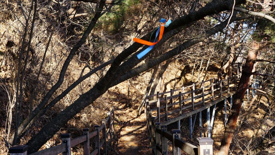 잔도처럼 이어지는 데크계단길,
