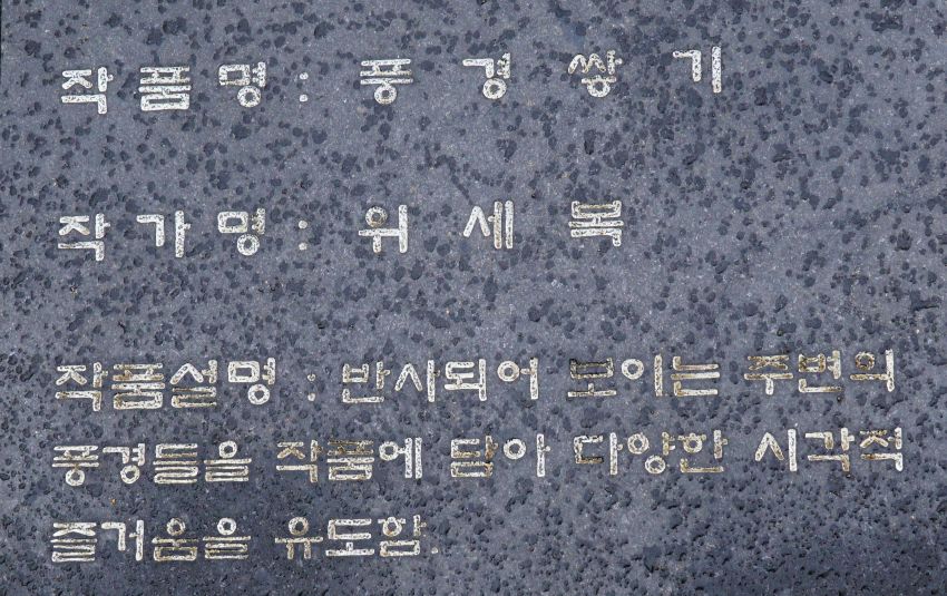 설치된 작품들이 모두 작품성이 돋보이는 작품들이네요, 대부분 2008년에 설치된 작품들에 2014년에 몇 점 일부 추가되었습니다. 작품 옆에는 작은 돌판에 작품명, 작가, 간단한 작품설명도 함께 새겨져 있어 작품에 담은 작가의 의도를 짐작해 볼 수 있겠습니다. 그날은 바람은 없었지만 회색 구름이 잔뜩 끼고 이슬비가 오락가락하면서 작품들에 스산한 겨울빛이 스며든 듯해 보였습니다.