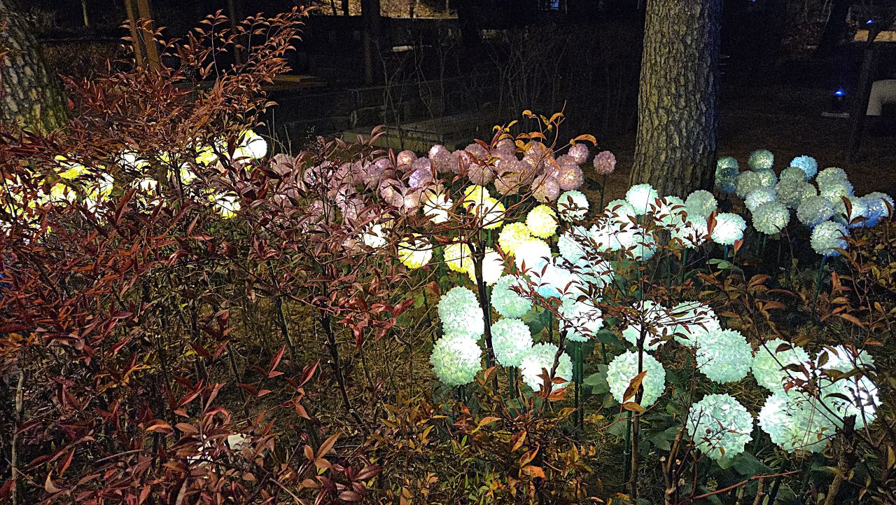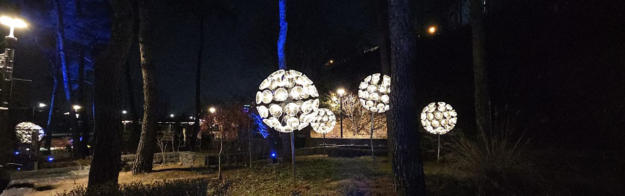 광진숲나루공원에는 수국과 민들레홀씨를 주제로한 LED조명이 설치되어 저무는 세밑을 밝히고 있습니다.