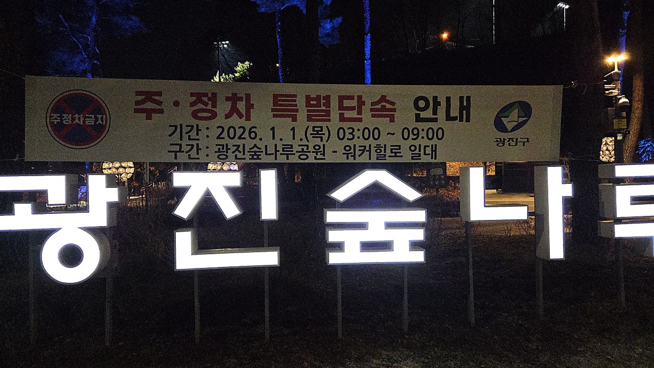 아차산은 서울의 가장 동쪽에 해맞이 명소죠. 코로나로 인해 해맞이 행사 이벤트가 취소되어 오다가 작년에는 무안 제주항공 참사로 인한 애도기간에 겹쳐 예고되었던 축제가 취소되기도 했었죠. 그러다 오는 1월 1일 아차산 어울림광장에서 해맞이 축제가 열린다는 들뜬 소식에 많은 사람들이 반기겠지만 오랜만의 축제에 인파가 몰리는 데 따른 안전사고 예방조치 일환으로 아차산 입산통제가 예고되었습니다. 숲나루공원에서부터 워커힐길 따라 여기저기 안내문이 걸려있네요.