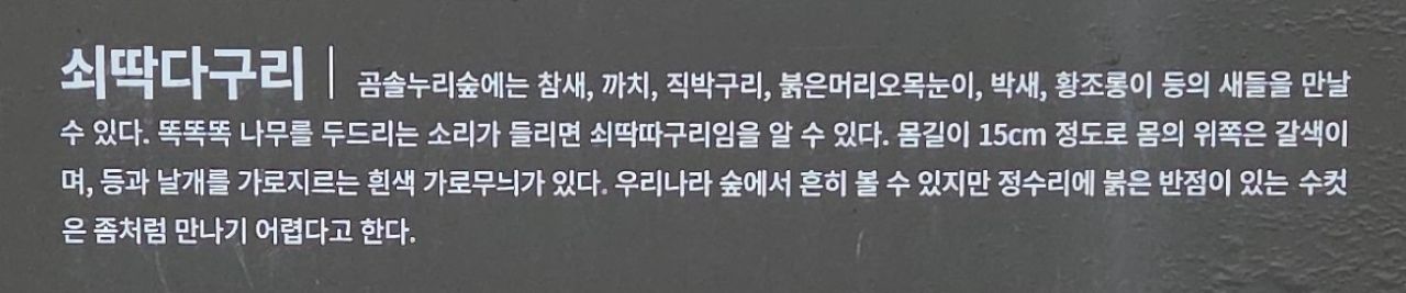 곰솔숲에는 쇠딱따구리도 살고 있다고 해서 기대를 걸었지만 만나지 못했습니다. 까마귀, 까치 어슬렁거리고, 참새 무리 지어 노는데, 직박구리는 시끄럽게 날고 있었습니다.