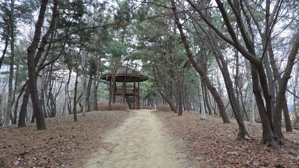 서해교 넘어가 이어지는 솔밭길에서 좌측 아래 산책길로 내려가면,