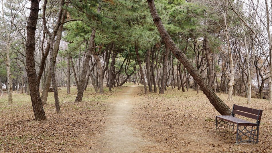 출발부터 이어지는 멋진 소나무들이 가득한 솔밭길, 정왕호수 지나 다시 이어지는 세(3) 개의 솔밭길, 옥구공원 지나서는 일곱(7) 개의 해송솔밭길이 직선으로 이어지는 곰솔누리길, 모두 작은 솔방울이 무수히 떨어져 뒹굴고, 겨울 냄새 겨울 솔향이 은은한 맨발로 걸어도 좋은 푸른 솔밭길입니다. 마지막에 정왕역 지나 다시 이어지는 빼곡한 솔밭길로 마무리되는, 하루 종일 소나무들과 함께 걷는 솔향 솔밭길 코스입니다. 바람도 없고 춥지는 않았지만 겨울 햇볕이 없는 종일 회색 구름에 가려진 스산한 하루였습니다.