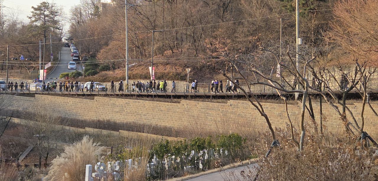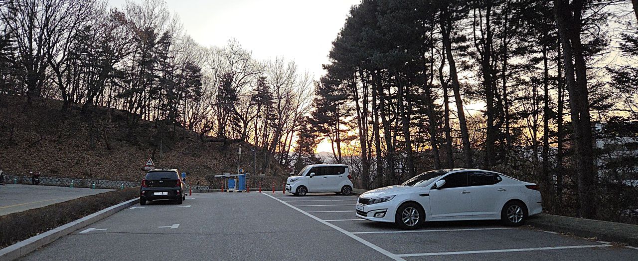07:28분, 어울림광장에는 이 시간 해맞이축제 준비로 분주하네요. 우선 새해에 떠오르는 희망찬 해돋이를 보러 워커힐 호텔 쪽으로 발길을 돌립니다. 코너코너에 자원봉사자 분들 많이 나와 행사안내와 교통흐름을 위해 수고들 많이 하고 계시는데, 물어보니까 아직 도로통제, 입산통제 없이 순조롭게 진행되고 있다고 하네요. 차량통제가 없어 워커힐길에 승용차들도 막힘없이 오고 가고 있습니다.