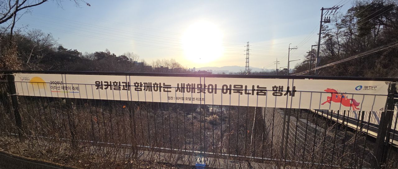 ① 2026 일출 07:54:26 워커힐전망대, ② 아차산 해맞이축제 어울림광장, ③ 워커힐호텔 어묵 나눔, ④ 광진구청 청렴도 1등급
