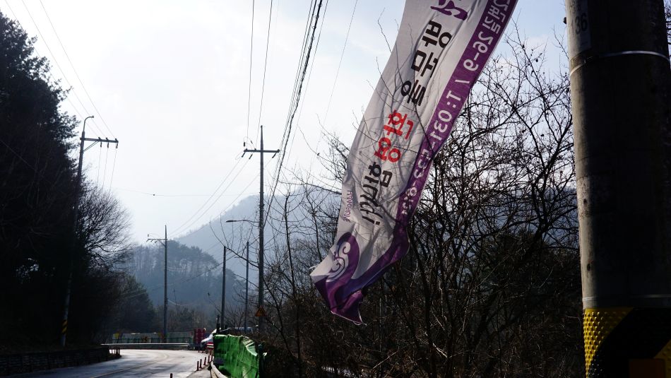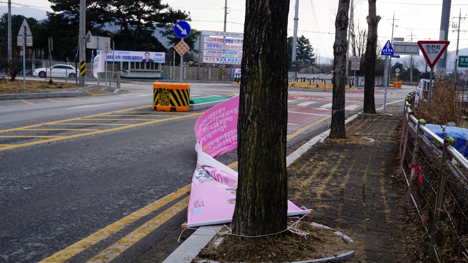 강풍에 뜯겨 버린 현수막