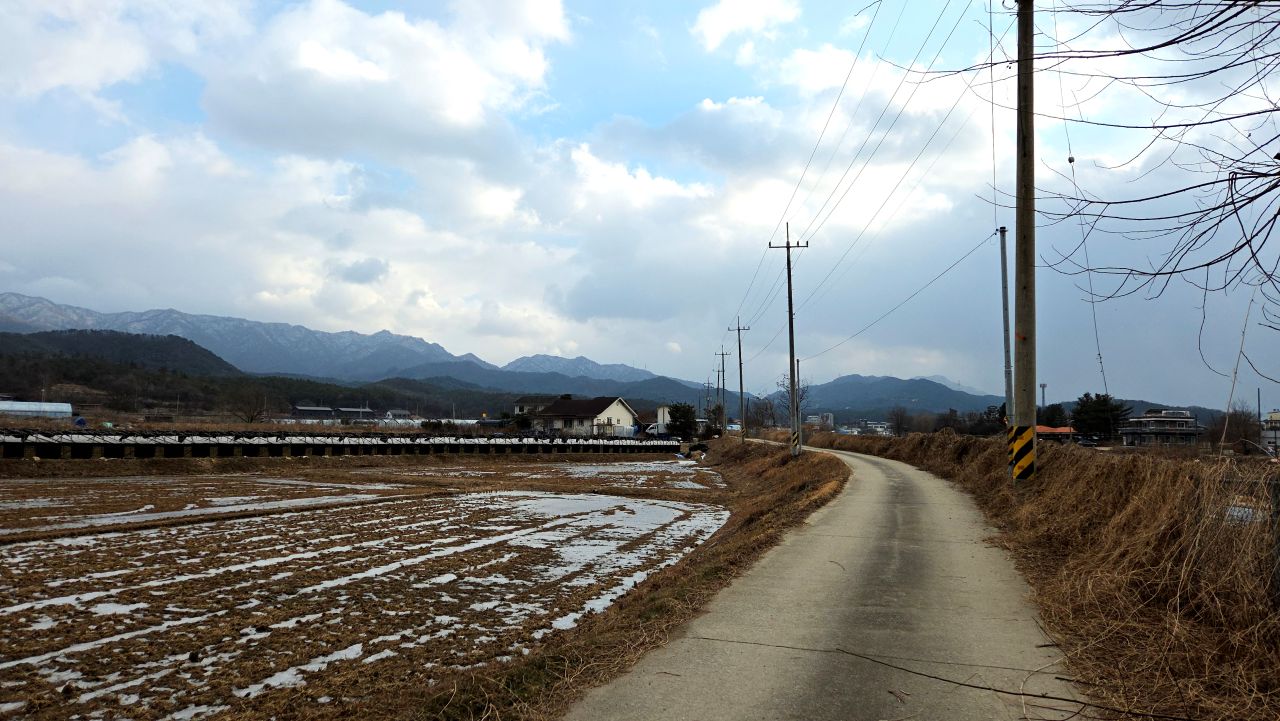 농로 전봇대에 붙은 화살표를 놓치면 알바하게 됩니다.