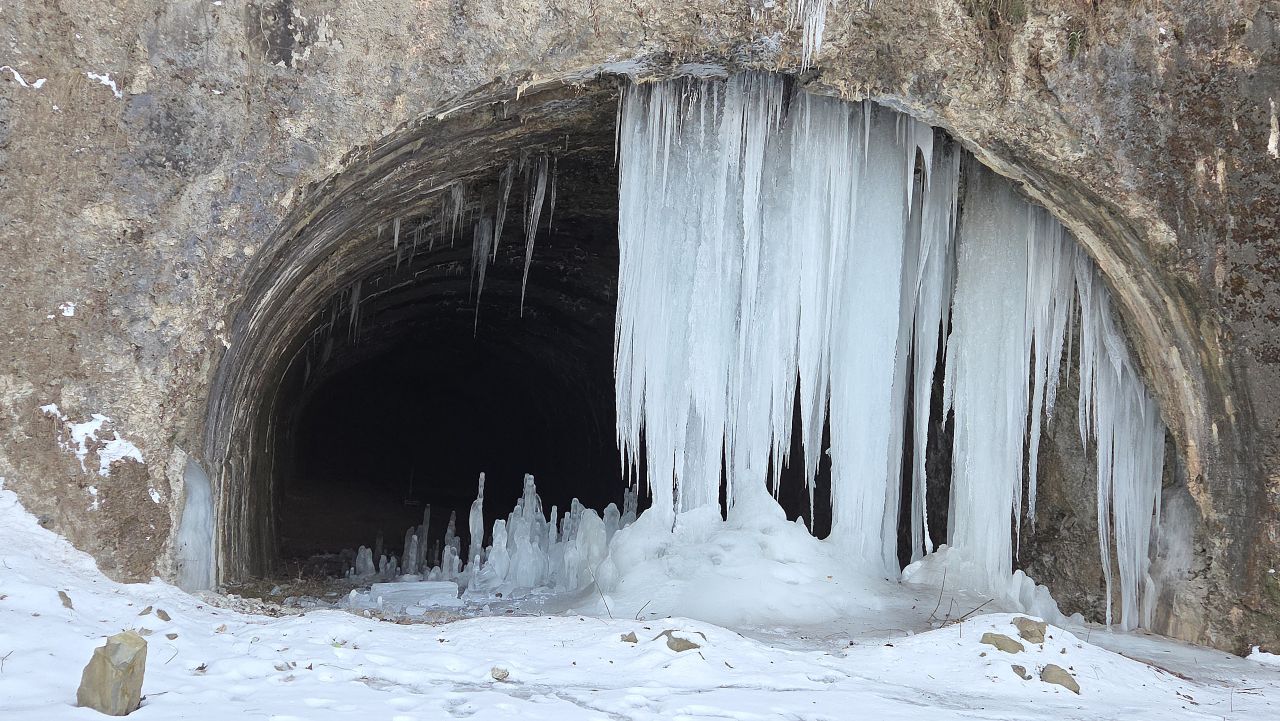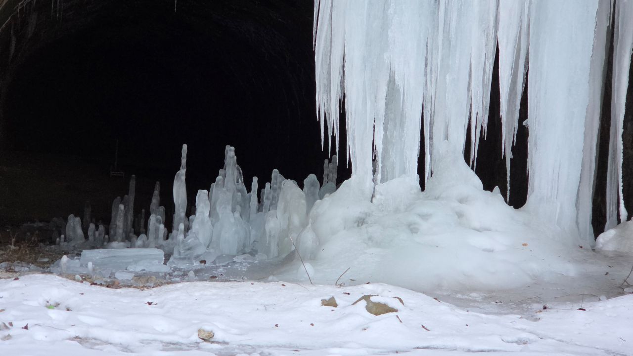 지금 연천 대광리 폐터널 속에 자라고 있습니다. 입구에서 보면 무시무시한, 거대한 상어 이빨처럼 보이네요. 겨울의 신비죠.