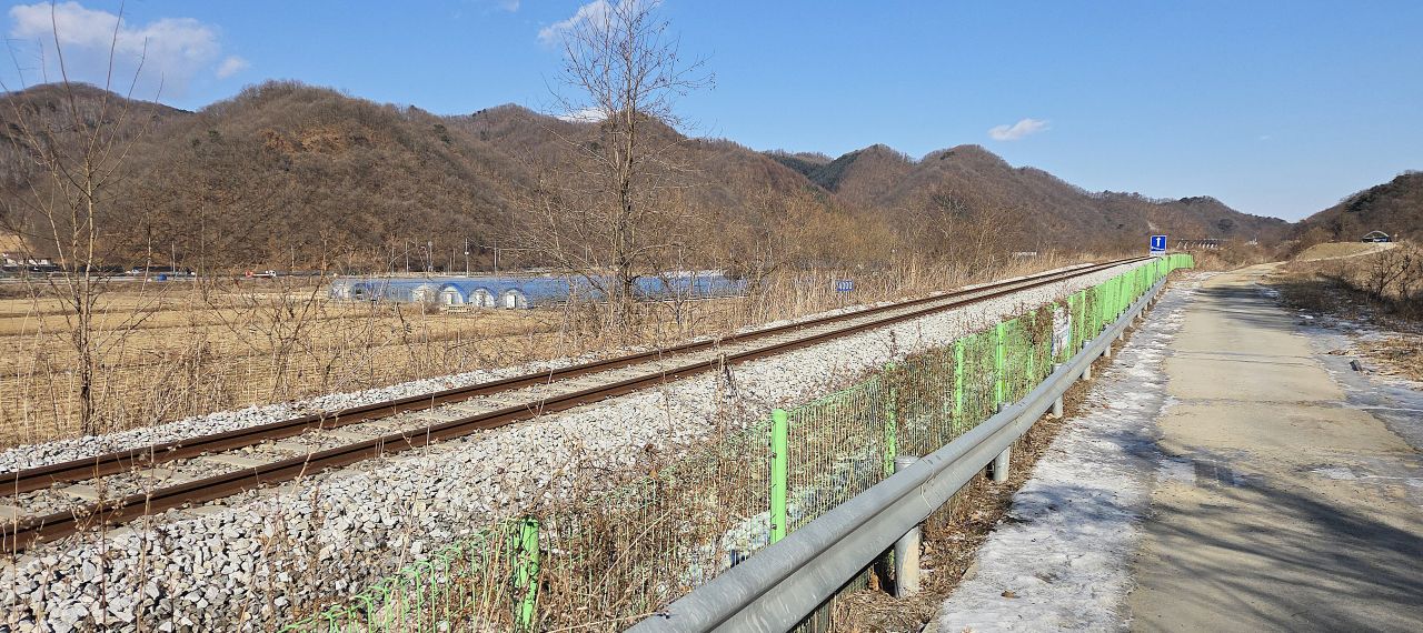 우측에 그린 철망으로 가려진 경원선 철길