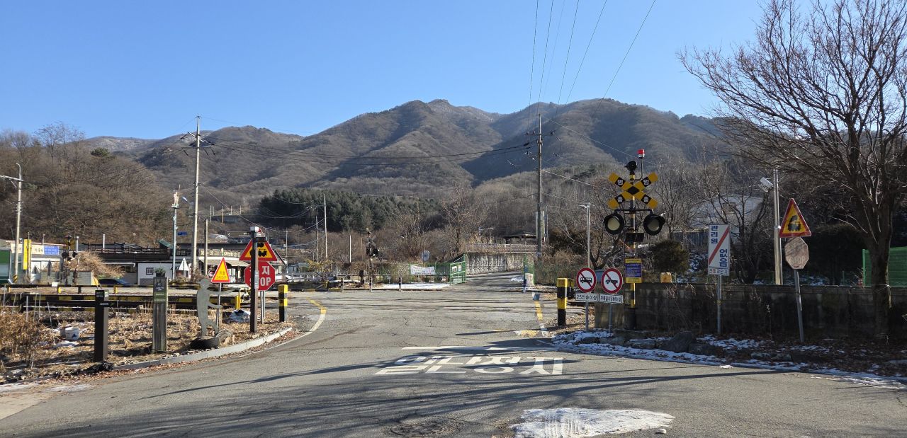 신탄리역으로 다 돌아와서는 좌측 고대산으로 가는 무인건널목에서 플랫폼 한번 둘러보고 아까 출발점으로 원위치하였습니다.