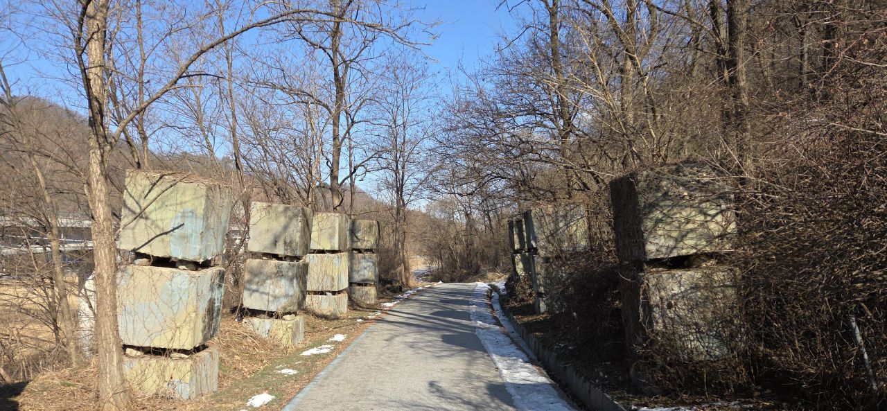 이 좁은 길에도 대전차 장애물 설치되어 있습니다.