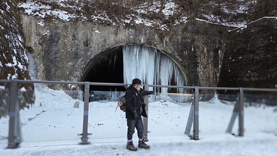 더 이상 접근, 들어가지 못하도록 안전펜스가 설치되어 있습니다. 저런 무시무시한, 날카로운 고드름이 달린 터널 속을 아무런 안전장비 없이 들어가는 것은 위험천만이겠어요. 하지만 깊고 어두운 터널 속, 궁금하네요. 들여다볼 수 없어 아쉽습니다. 대형 모니터라도 설치해주었으면 싶은데요..