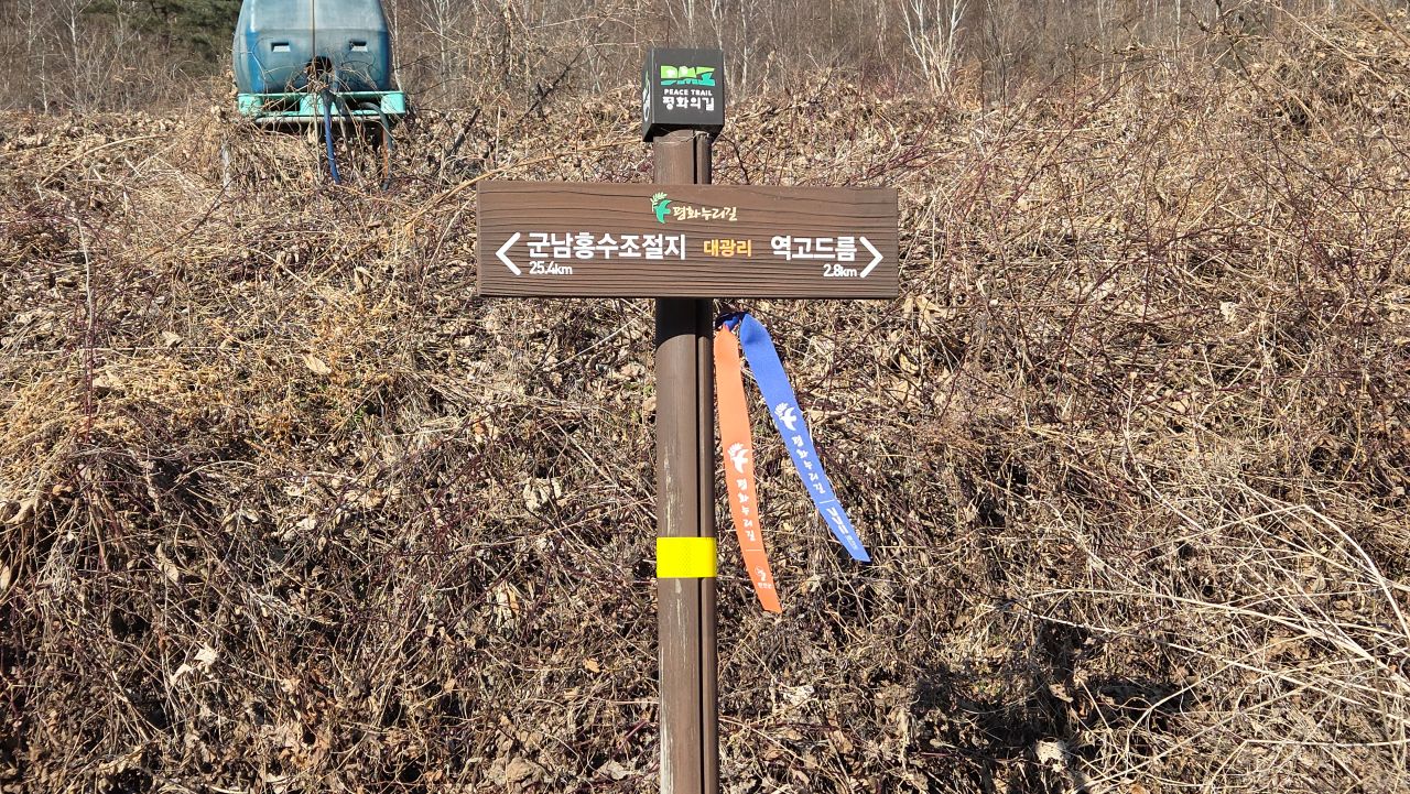 계속 평화누리길 따라갑니다. 현재 영하 9도, 뒷바람이 세게 불고 있습니다.