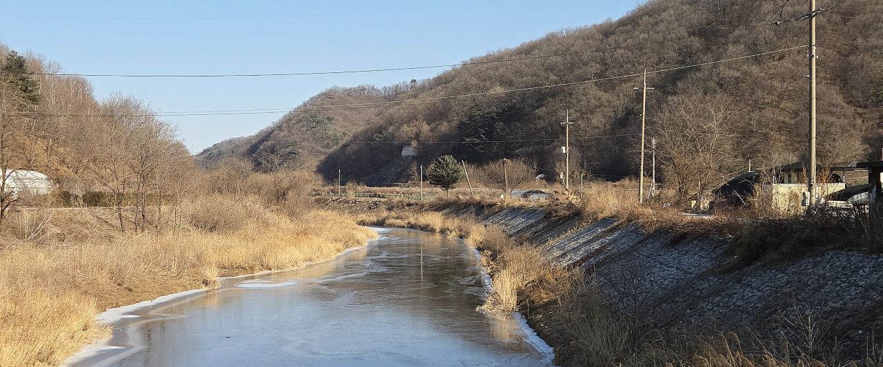 차탄천 개울은 꽁꽁 얼었습니다.