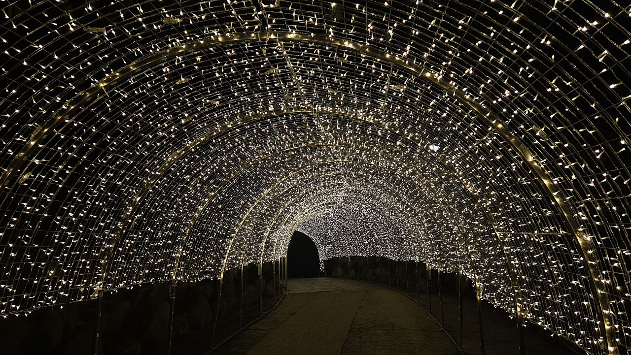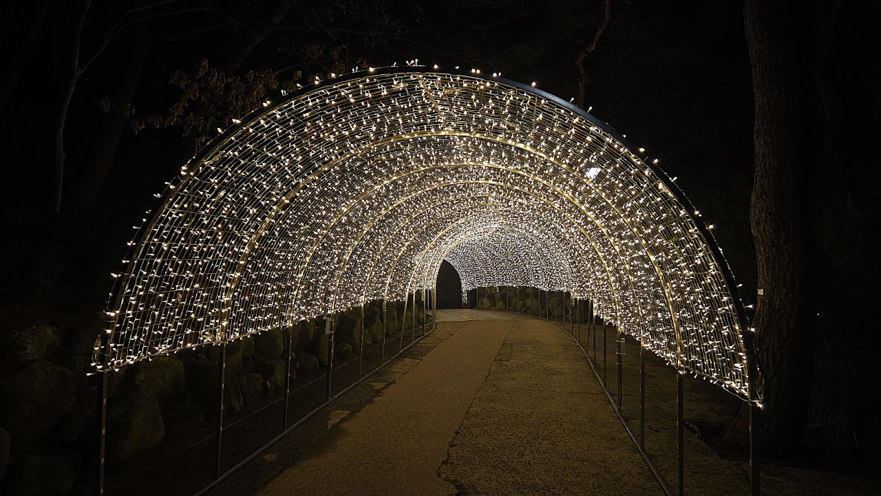 아차산관리소 부근 소나무길에 반짝이는 조명을 영상으로 담았습니다.