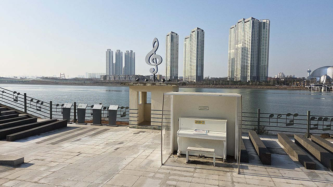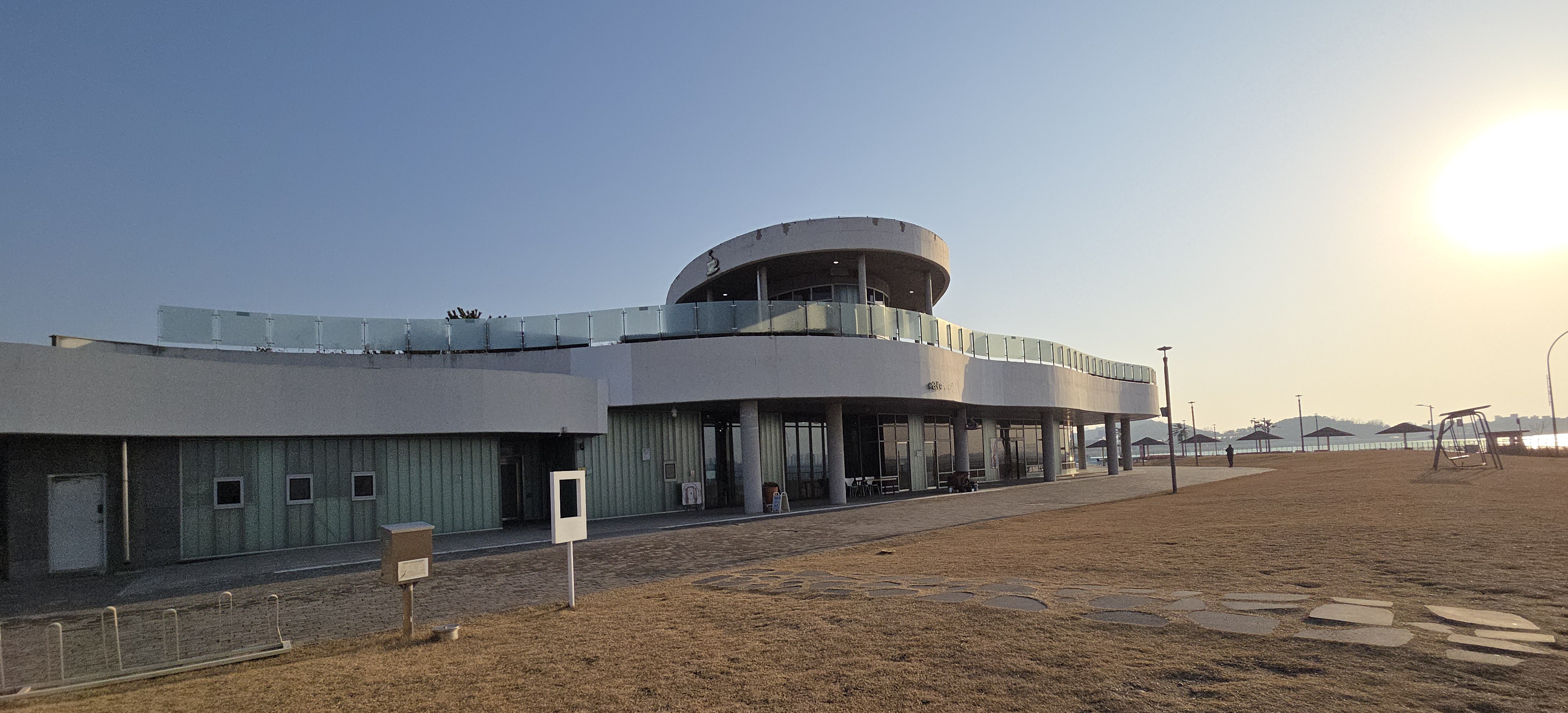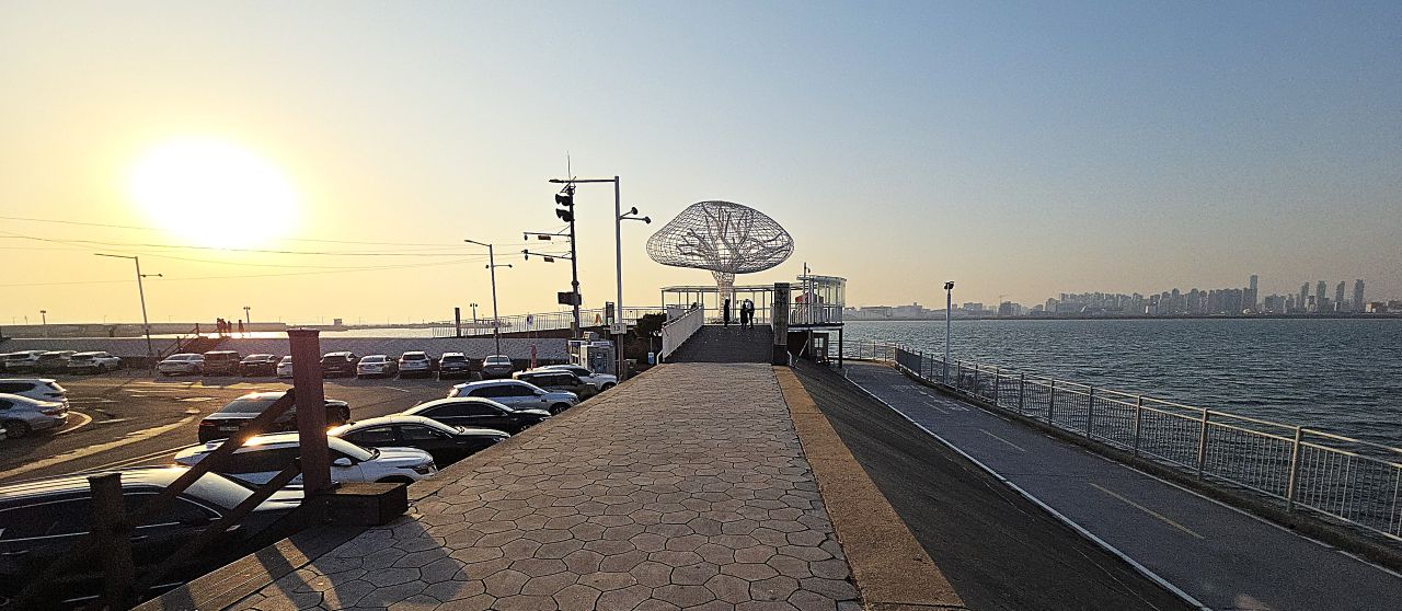 14:51분, 해넘이다리 건너편 특이한 건물은 소래아트홀