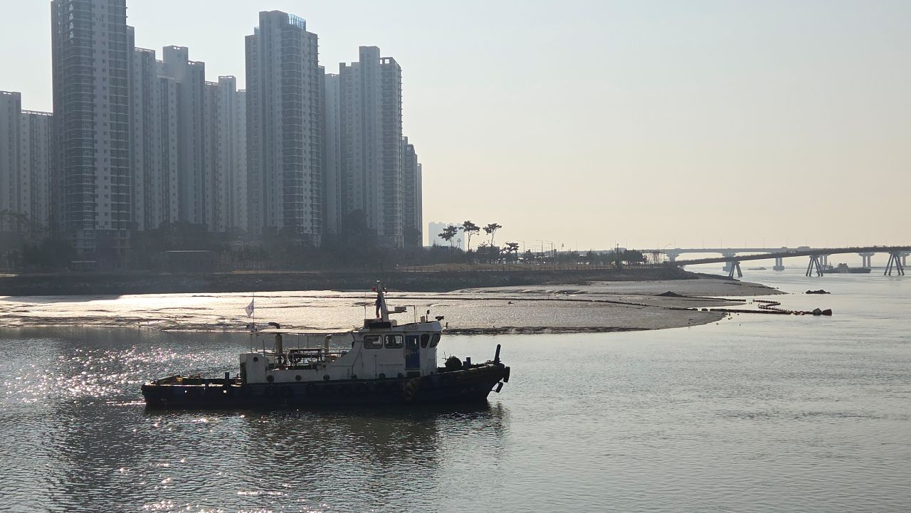 갈대 건너편에 보이는 인천 송도