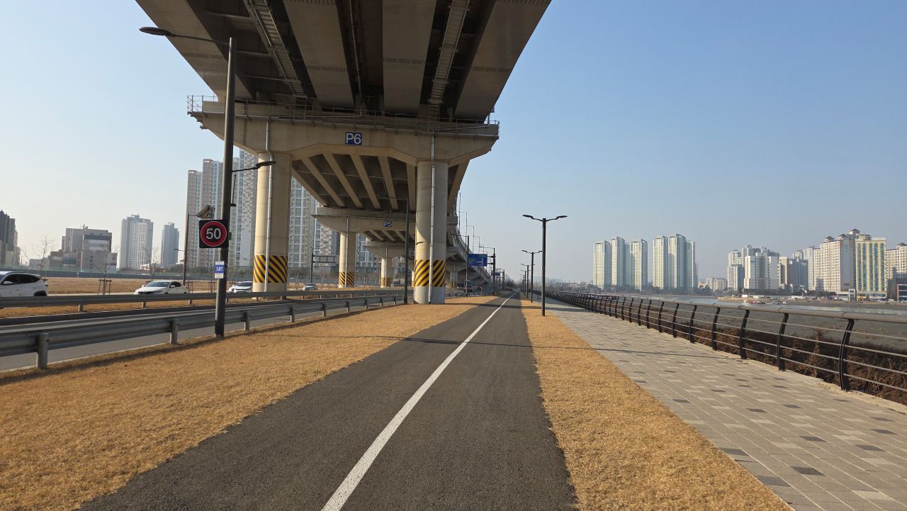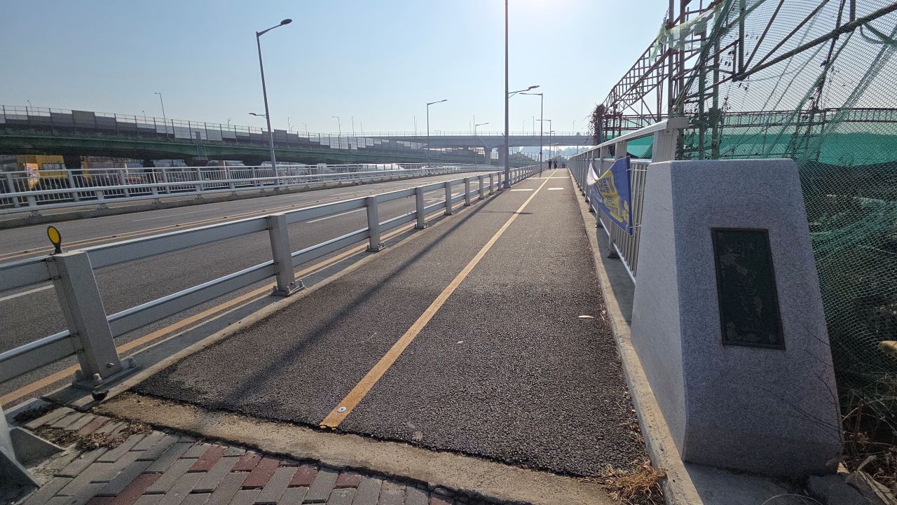 오늘 늠내길 6코스 구간은 경기둘레길 53코스를 지난여름 자전거로 달렸던 그 코스여서, 중복을 피해보려고 우회길인 비류대로를 선택해 보았습니다. 신현역에서 출발, 그냥 관곡지 쪽으로 갔어야 하는 것을 늠내길 2코스와 중복되는 것 같아 가다가 되돌아왔는데, 차량들이 씽씽 달리는 비류대로에서 탈출, 방산사거리(방산교)에서 서해안로로 이어져 갯골에 진입했으나 우회길은 차량들이 계속 씽씽 달리는 대로변 갓길이었습니다. 모두 직선 도로로 자전거에는 부담이 없으나 걷기에는 먼데요. 대로 옆으로 한적한 농로들이 이어지겠지 하면서 따라간 건데, 없네요, 바로 대로로 올라가네요. 되돌리기는 늦은 것 같아 그대로 진행 거의 6킬로를 우회하였습니다. 바로 갯골(자전거다리)에 진입하려면 신현역보다는 월곶역이나 달월역에서 끊어가기를 추천드립니다.